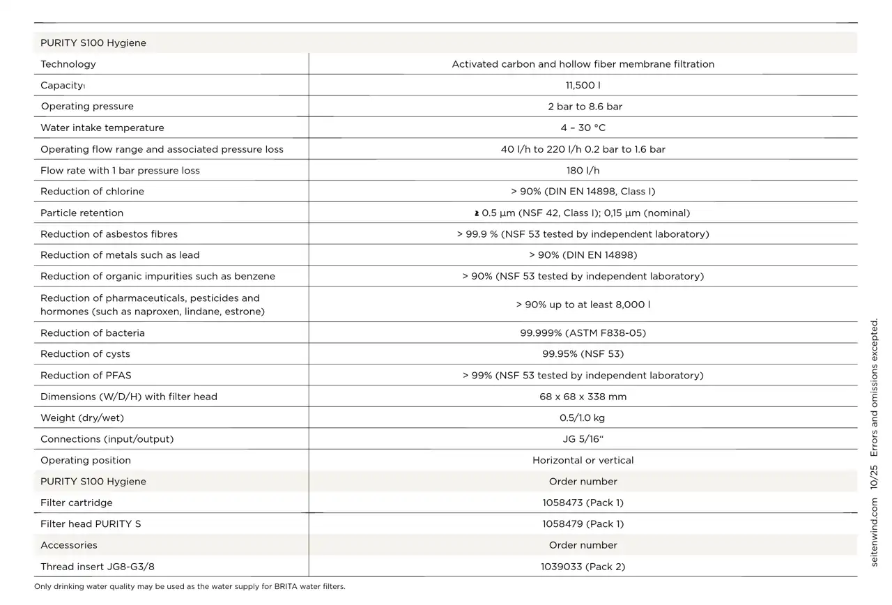 - – Reliable hygiene protection: removes 99.999% of bacteria and 99.95% of cysts